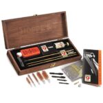 This kit contains Hoppe’s No. 9 solvent lubricating oil patches three piece brass rod four slotted ends and five phosphor bronze brushes to fit .22 and .30 caliber rifles .38 caliber handguns and 12 and 20 gauge shotguns. The kit also contains a rifle/shotgun adaptor handgun adaptor silicone cleaning cloth and Hoppe’s Guide to Gun Care booklet.
