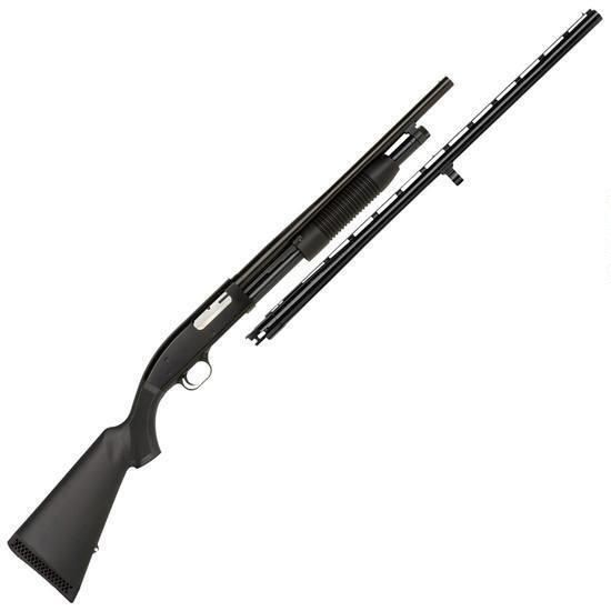 PUMP-ACTION FEATURES: Dual extractors, twin action bars, positive steel to steel lockup, and an anti-jam elevator provide trouble free operation. Fully-interchangeable with Mossberg 500 barrels (within gauge and capacity). The diverse selection of available accessory barrels allow shooters to adapt their Maverick 88 for multiple hunting or security purposes.