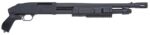 The FLEX 500 Tactical series is a modular system of shotguns based on the legendary model 500 with the LTS (Tool-Less Locking System). This system consists of three convenient connecting technologies that bring another level of flexibility to tactical shooting endeavors. One locking pen is for the stock, one for the forend, and one for the recoil pad. The Tactical series is set up for any of your shotgun’s personal protection needs but easily allows you to change the stock, forend or recoil pad for a specific need. This model features blued metal finish, a synthetic black pistol grip, and a stand-off/breacher barrel.