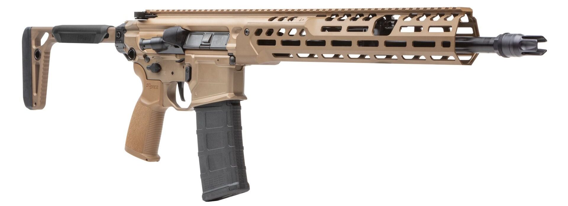 The Sig Sauer MCX-Spear LT chambered in 5.56 Nato is the latest iteration of the groundbreaking MCX platform. Developed through extensive testing to meet military requirements. The MCX Spear is optimized for suppressors with a gas piston operating system that prevents excess gas from fouling the chamber and features a SIG QD suppressor ready flash hider. Based on the MCX Virtus, the MCX-SPEAR LT has a lightened handguard with with increased rigidity and a lightened profile barrel with improved accuracy. Improved ergonomics include fully ambidextrous controls including a new bolt catch/release that aids the clearing of malfunctions without breaking your firing grip. A minimalist folding stock aids in compact storage and portability while allowing the weapon to be fired in the folded position. The MCX-Spear comes with an excellent SIG flatblade match trigger but AR trigger compatibility allows the replacement with the aftermarket trigger of your choice. The MCX-Spear LT, sets a new standard for reliable, modular weapons technology with lighter weight, improved ergonomics and compatibility.