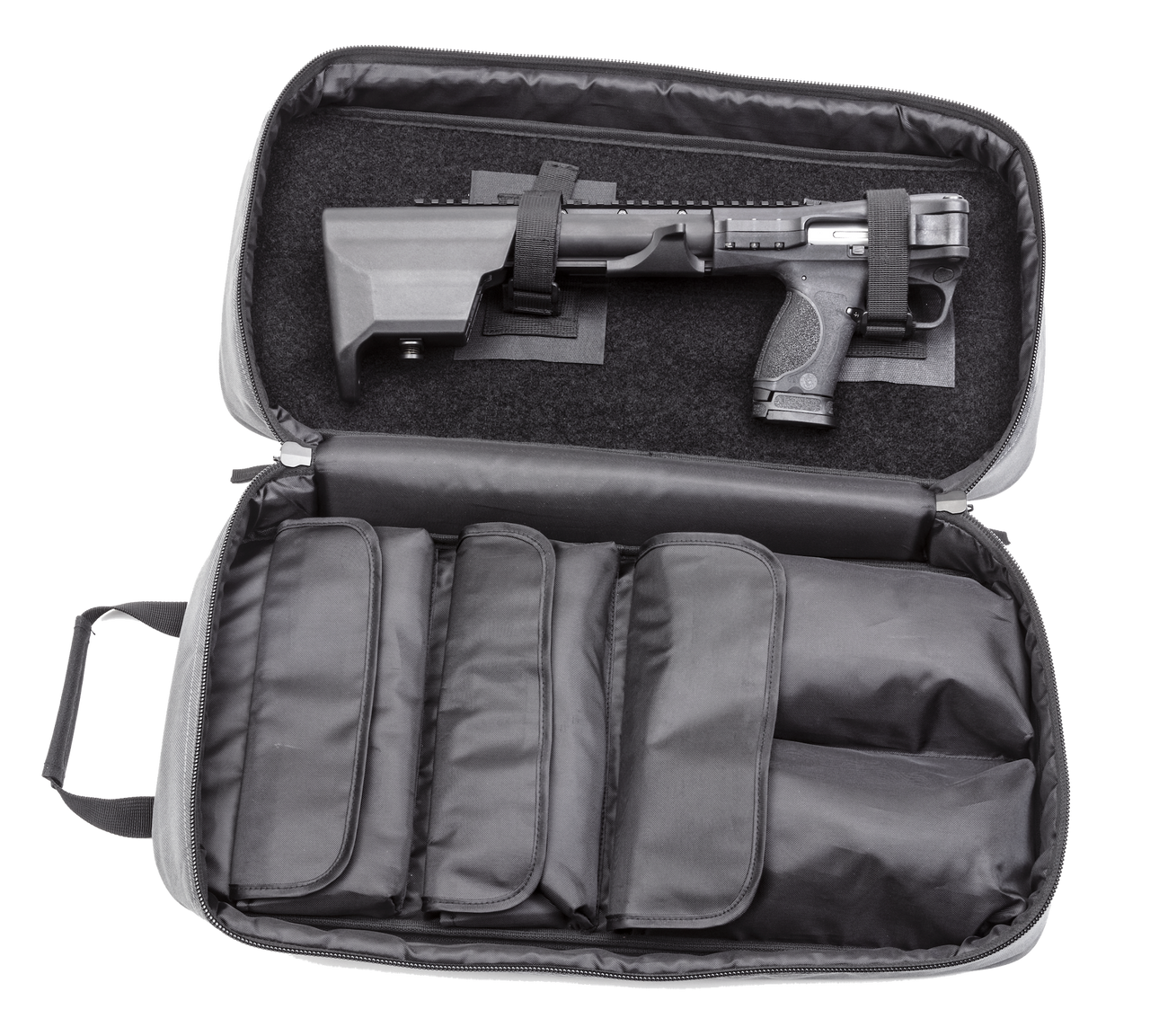 The S&W M&P FPC Carbine chambered in 9mm features a compact folding design that is compatible with M&P full-size and compact pistol double-stack magazines. The Smith & Wesson M&P FPC with its 16. 25″ threaded barrel folds down to 16.375″ for compact storage and transport and comes with its own carry bag with additional storage. When unfolded the FPC Carbine has a 30.375 overall length with a 14.5″ length of pull. The innovative FPC is compatible with M&P Pistol double-stack magazines. The FPC Carbine comes with (one) 17-round and (two) 23-round magazines as well as an in-stock magazine storage system that allows you to carry all three magazines on the rifle for maximum capacity and fast magazine changes. The FPC is ready for your choice of optics and accessories with a full length Picatinny rail and M-LOK slots on the handguard. Owners of S&W M&P pistols will appreciate the FPC’s M&P M2.0 Compact-size grip, magazine compatibility, and M&P Flat-face trigger with crisp break. As an added bonus, this carbine includes a carrying bag with additional storage and Velcro® straps.